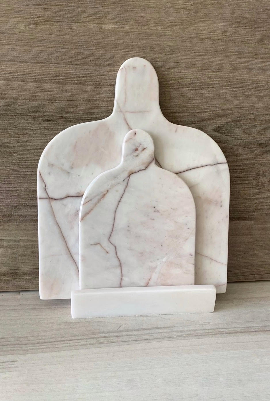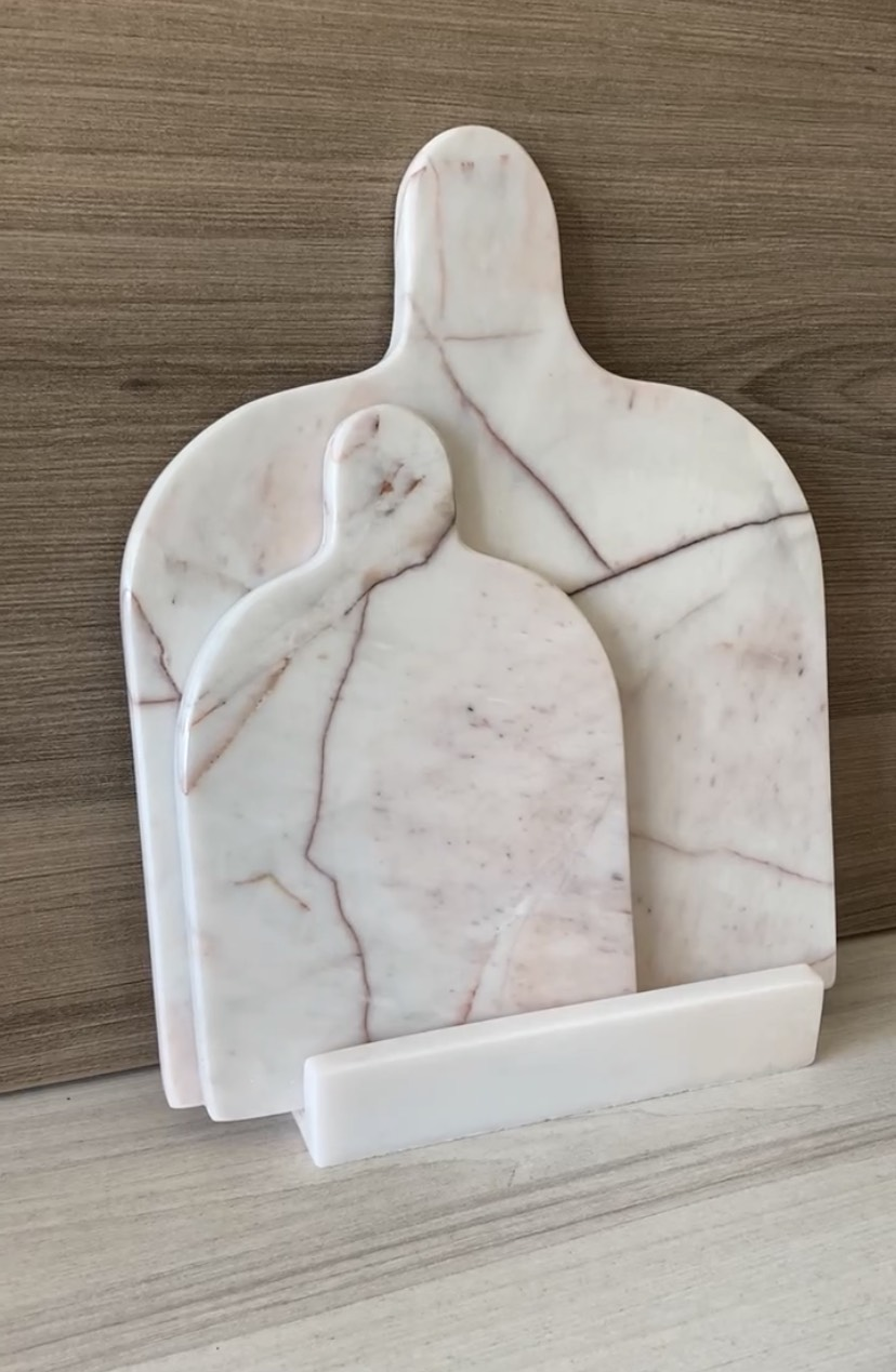 Juego de tablas de mármol para uso de cocina y decorativa. Puedes exhibirlas ya que tienen un pedestal para ponerlas de pie.